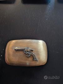 Western vintage – Chambers Belt Co., Made in U.S.A. – anni ’70/’80 lotto di 4 fibbie Testa di cavallo Stivali Revolver Testa di toro