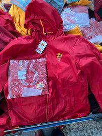 Giacca a Vento - Wind Stopper ufficiale AS Roma taglia XL (ma può andar bene anche come L) con cappuccio, tasche laterali e zip. Disponibili n. 8 pezzi ancora in confezione originale, prezzo speciale per acquisto totale o multiplo del lotto.