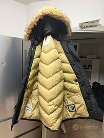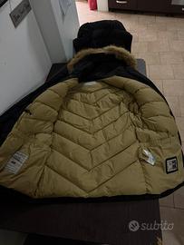Vendo intramontabile Woolrich Arctic Parka color nero con interno a contrasto. Il capo è originale, caldissimo (imbottitura in piumino d'oca) e perfetto per le temperature più rigide.