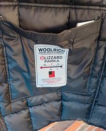 Woolrich Blizzard Parka in tessuto Ramar Cloth (60/40), imbottitura in vero piumino d'anatra e bordo in vera pelliccia di coniglio morbidissima. Manca la cintura originale, ma il capo è perfettamente indossabile e caldo.