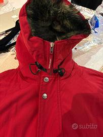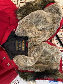 Vendo giacchetto Woolrich originale, modello corto color rosso vivo, con cappuccio e bordo in pelliccia.