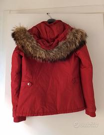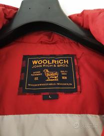 Piumino con cappuccio da donna di Woolrich. Di colore rosso. Taglia L. Ci sono tutte l'etichette. In ottime condizioni, leggere macchie interne del cappuccio, si toglieranno. Prezzo trattabile.