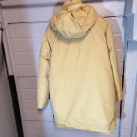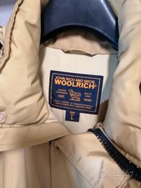 Piumino Woolrich taglia L unisex usato poco pari al nuovo con cappuccio (modello senza pelo) colore beige, senza difetti già lavato