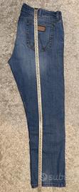 Jeans Wrangler Retro originali, modello Slim Straight. Denim resistente, colorazione vintage autentica e cuciture iconiche Wrangler. Vestibilità comoda e moderna, perfetti per look casual e western. Lunghezza gamba: 109cm Vita: 48cm