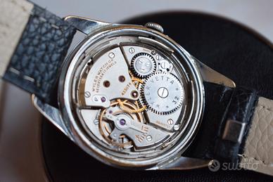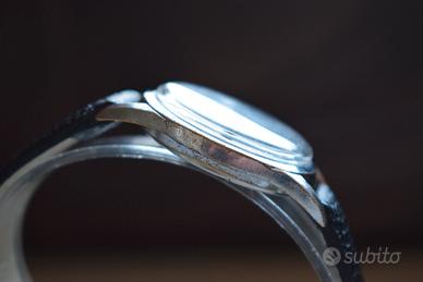 Propongo in vendita elegante Wyler Vetta vintage, dotato del celebre sistema Incaflex. L’orologio monta il calibro 32 a carica manuale, movimento affidabile e coerente con la produzione della maison, apprezzato per robustezza e semplicità costruttiva. Tiene bene il tempo ed è stato di recente controllato, risultando pronto all’uso. La cassa (d. 35mm) cromata presenta segni di usura visibili ma assolutamente accettabili, perfettamente in linea con l’età del segnatempo. Un aspetto vissuto che lo rende ideale per chi cerca un vero vintage, con carattere e storia. Il quadrante color avorio si distingue per la sua pulizia ed eleganza: configurazione classica con piccoli secondi a ore 6, sfere a bastone e indici applicati. I numeri arabi in rilievo a ore 12, 3 e 9 si abbinano agli altri indici a forma di freccia, anch’essi applicati e con una piacevole tonalità bronzata che dona calore e profondità all’insieme. Piccoli segni sul plexi che si possono facilmente togliere (su richiesta lo posso fare gratuitamente). Un Wyler Vetta autentico e senza compromessi, perfetto per chi apprezza il fascino del tempo e le soluzioni tecniche storiche come l’Incaflex, in un orologio dal design equilibrato e intramontabile. Importante: l’orologio proviene dalla mia collezione privata, pertanto la vendita si intende tra privati.