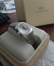 Elegante - Raffinato - Introvabile i 3 aggettivi per sintetizzare questo spettacolare Wyler ! Al suo interno è posizionato il famigerato movimento ETA 2824-2,sinonimo di precisione,robustezza ed affidabilità! Il meccanismo è Logato e brandizzato anche dal produttore Wyler !! Cassa di forma da 39mm escluso corona. Molto bella perché lavorata ad alternanza in acciaio Cromato e Satinato ! Quadrante bianco con indici applicati argentati con i 4 punti numeri romani. Datario scatto rapido ore 4. Vetro zaffiro ottico Water resist 100m. Il.tutto perfettamente funzionante e preciso. Le sue condizioni sono semplicemente da Vetrina di Esposizione!! Bello,luccicante e come Nuovo!! Difficilmente reperibile in queste condizioni spettacolari. Il bracciale anche esso si alterna ad acciaio lucido a contrasto con rifiniture satinate. Ha tutte le maglie !!! Full set a corredo con custodia in pelle (in via di squamature) e controcustodia. Ha persino il panno originale pulisci orologio mai utilizzato. Card Garanzia timbrata e datata anno 2019. Orologio elegante e raffinato e rivolto a conoscitori. Astenersi inutili perditempo. Si rende visibile e disponibile da Esclusiva Collezione Personale. ....guarda il mio armadio!