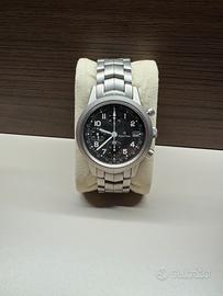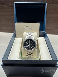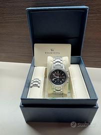 Bellissimo cronografo automatico originale Wyler Vetta modello Uptown E3175W, completo di scatola, documenti e scontrino d’acquisto. Orologio dal design sportivo ed elegante, con cassa in acciaio e bracciale originale. Quadrante nero con numeri arabi ben visibili, tre contatori cronografici, scala tachimetrica e datario a ore 3. Il movimento automatico valjoux 7750 lo rende ancora più affascinante, ideale per appassionati e collezionisti. 🔧 Caratteristiche: •Modello: Uptown E3175W •Movimento: automatico •Funzione cronografo •Datario •Cassa e bracciale in acciaio •Quadrante nero •Tachimetro 📦 Dotazione: •Scatola originale •Documenti •Scontrino d’acquisto. Accetto scambi e permute.