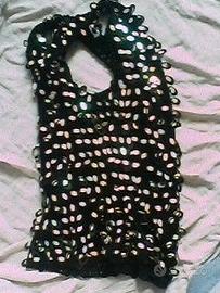 x la SERA NeroPajettes: Pochette, Canotta, Vestito Trittico SERA Nero & Pajettes: Pochette, Canotta e Vestito Pochette in rilievo + Canotta all pajettes + Vestito lungo con spalline fini tutto coperto di pajettes >> altre foto a disposizione << a) Pochette nera da SERA Fronte con lavorazione su tutta la supeficie di disegni in rilievo nero su nero. Retro liscio tipo raso, chiusura con bottone a pressione nascosto leggera, a mano senza maniglia. cm. 20 x 13 x prof. 2 con soffietto a sviluppo triangolare fino a 6 cm alla base. .................................. b) Canotta nera in maglia completamente traforata e totalmente coperta da pajettes ovali doppie Misura media. (lungh. cm.59 largh.33 ) ................................... c) Vestito lungo nero, con fodera nera, tutto coperto di pajettes nere, tonde, piccole, fisse con spalline fini e due spacchi laterali. Lunghezza cm. 125. ................................... a) e b) cad. eur 18 tratt. vestito c) eur 28 tratt. sconto per il trittico e anche con acquisti su altri miei annunci. Per es.: SCONTO "3 x 2" Visione, consegna gratuita in Torino, oppure spedizione.