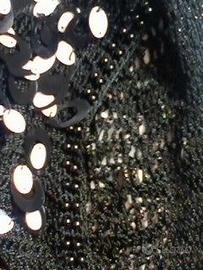 Trittico SERA Nero & Pajettes: Pochette, Canotta e Vestito Pochette in rilievo + Canotta all pajettes + Vestito lungo con spalline fini tutto coperto di pajettes >> altre foto a disposizione << a) Pochette nera da SERA Fronte con lavorazione su tutta la supeficie di disegni in rilievo nero su nero. Retro liscio tipo raso, chiusura con bottone a pressione nascosto leggera, a mano senza maniglia. cm. 20 x 13 x prof. 2 con soffietto a sviluppo triangolare fino a 6 cm alla base. .................................. b) Canotta nera in maglia completamente traforata e totalmente coperta da pajettes ovali doppie Misura media. (lungh. cm.59 largh.33 ) ................................... c) Vestito lungo nero, con fodera nera, tutto coperto di pajettes nere, tonde, piccole, fisse con spalline fini e due spacchi laterali. Lunghezza cm. 125. ................................... a) e b) cad. eur 18 tratt. vestito c) eur 24 tratt. sconto per il trittico e anche con acquisti su altri miei annunci. Per es.: SCONTO "3 x 2" Visione, consegna gratuita in Torino, oppure spedizione.