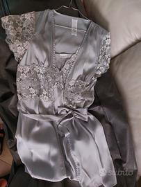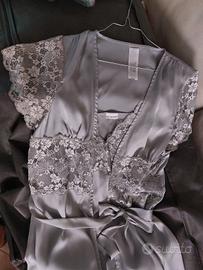 Camicia da notte con vestaglia argento, con particolari in pizzo. Yamamay. taglia M. Usata una volta
