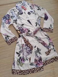 Vestaglia leggera donna TAGLIA S/M, fondo bianco fantasia floreale con dettagli animalier,