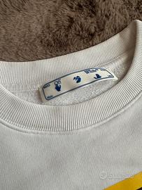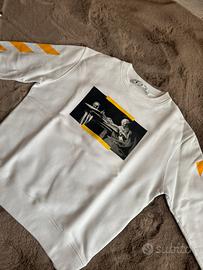Felpa bianca Off-White con stampa dipinto Caravaggio, diagonals gialle sulle maniche e hand logo sul retro