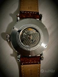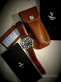 orologio come nuovo molto raro della yema commemorativo ai piloti avviatori del 1949,orologio automatico secondi al 9 spessore 11 mm.estremamente bello e funzionante. cinturino in pelle morbida e di ottimo spessore.