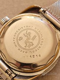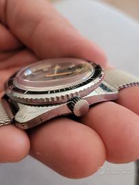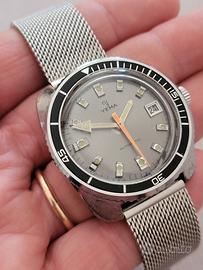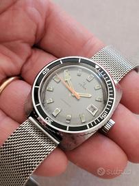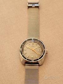 Bellissimo Diver Yema Plongée anni 70 Ref. 221214 Con Movimento Francese meccanico Automatico. Ebauche FE3611 Dial Argentè con datario ad ore 3 Lancetta dei secondi arancione. Indici applicati con lancette luminescenti. Cassa a cuscino 37 mm esclusa corona. Fondello a vite in acciaio. Ghiera bi-direzionale. Cinturino maglia milanese strapcode aftermarket. Perfettamente Funzionante. Conservato come da foto. 📦 Visita il mio Shop! 🗣 Chiedimi per qualsiasi dubbio! 💰 Fai una Proposta al venditore