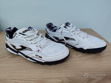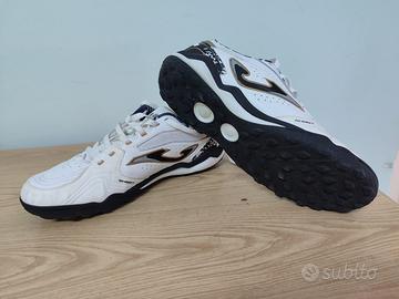 Scarpe da calcio con suola turf (superfici sintetiche e moquette). Consigliate per l'uso professionale, sia per uomo che per donna. Modello di alta gamma dall'aspetto rinnovato, pur mantenendo la qualità e la tecnologia che lo contraddistingue. La tomaia è realizzata in pelle di prima qualità, un materiale flessibile, resistente e traspirante. Inoltre, fornisce un eccellente contatto con il pallone. Ventilazione rinforzata con la tecnologia VTS, che consiste in piccole perforazioni situate in aree strategiche per migliorare il flusso d'aria. Incorpora un tessuto imbottito nella zona della caviglia e sulla linguetta per una maggiore vestibilità e comodità. La vestibilità è ottimizzata grazie all'allacciatura PERFECT FIT. Include la tecnologia PROTECTION sulla punta, un rinforzo in gomma che protegge dagli impatti. L'intersuola a doppia densità FULL DUAL PULSOR ha il FOAM REACTIVE sulla parte inferiore, un sistema di ammortizzazione che assorbe gli impatti e restituisce un buon ritorno di energia. La parte superiore è in phylon. La suola è in gomma DURABILITY di alta qualità con buona resistenza all'abrasione e aderenza alla superficie. Con struttura multi tacco che riduce la pressione del passo e garantisce un buon sostegno. Allo stesso modo, dinamizza i movimenti rotatori grazie alla tecnologia ROTATION. Usate solo una volta, vendo causa misura sbagliata.