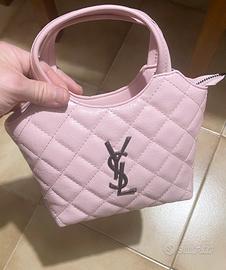 YSL – Borsa da donna elegante. Design moderno con effetto trapuntato, colore rosa delicato e logo frontale. Compatta e pratica, perfetta per l’uso quotidiano o per occasioni speciali.