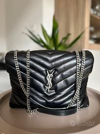 Borsa YSL LOULOU media nera con logo e catena argento, dustbag, salvietta per pulizia integra e certificato di autenticità☺️