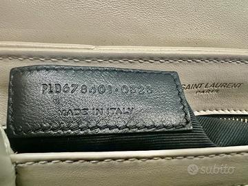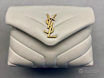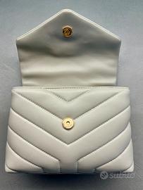 Borsa a tracolla “Lou Lou Toy” in pelle trapuntata a Y colore crema soft collezione 2023 mai usata. Parti metalliche in ottone color oro anticato. Logo YSL sulla patta. Tracolla regolabile e rimovibile in pelle tono su tono. Chiusura con bottone magnetico. Fodera in tessuto gros-grain nero. Due scomparti, una tasca con zip e scomparti per carte. Portabile a spalla, a tracolla o come pochette. Borsa in pelle di vitello piumotto morbido e resistente. Larghezza 18 cm Altezza 12 cm Profondità 7 cm Tracolla 55 cm Modello fuori produzione, ricercata per investimento o appassionati di moda. Vendo completa di tutte le parti originali, inclusa dust-bag, scatola e quanto nella prima foto. Se realmente interessati sono disponibile a mandare più foto e fare videochiamata per dimostrare l’autenticità dell’articolo con prova d’acquisto.