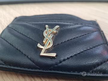 Porta carte in pelle conciata senza metalli, decorato con iniziali YSL in metallo e impunture trapuntate.