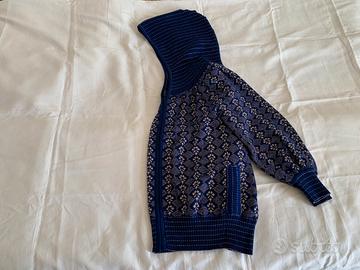 Cardigan Blu/ricami filo dorato Lana