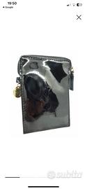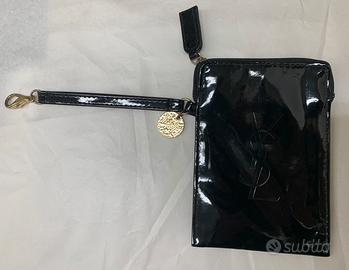 Grande logo YSL stampato su vernice nera lucida con ciondolo dorato con inciso YSL