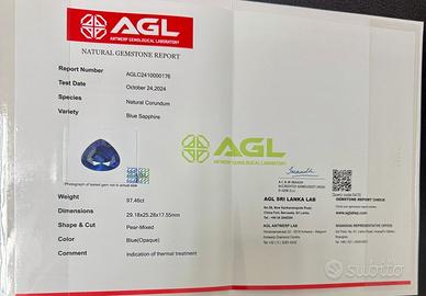 Zaffiro Sri Lanka Ceylon Crttificato Ct. 97.46