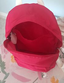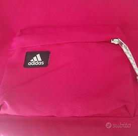 In poliestere, lavabile, capiente, super leggero, color fragola lo zainetto Adidas è composto da una tasca principale di dimensioni generose dotata internamente a sua volta di una ulteriore tasca, ed una tasca frontale comoda per gli oggetti da tenere a portata di mano. E’ praticamente nuovo.