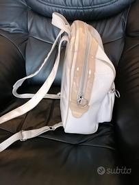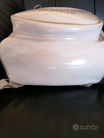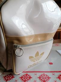 Vendo bellissimo mini-zainetto originale Adidas Originals in vernice lucida, nell’iconica colorazione panna/cream con logo e dettagli in color sabbia. Un pezzo dal fascino retro perfetto per completare outfit in stile Y2K o vintage attuale.
