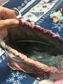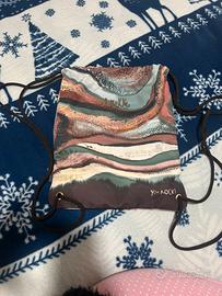 Bellissimo zainetto con coulisse del marchio Anekke, caratterizzato da una fantasia artistica nei toni del verde, rosa, beige e marrone. Modello leggero e pratico, perfetto per il tempo libero, la scuola o le uscite quotidiane.