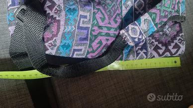Zainetto con un design etnico e colorato, perfetto per aggiungere un tocco di stile, può presentare qualche segno di usura, ha almeno 25 anni