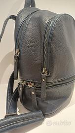 Piccolo ma praticissimo zainetto in ecopelle color Blu Navy. Cerniere perfettamente funzionanti. Bretelle regolabili. Mai usato. Interno pulito. Nessun segno di usura. Misure ideali per viaggiare in aereo come bagaglio a mano.
