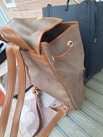 Zainetto in tessuto con stsmpa OP e dettagli in pelle . Chiusura con coulisse e patta . Tasca esterna . Spalloni x portarlo a spalla .