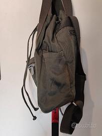 Vendo zainetto trasformabile in borsa KIPLING (autentico) usato poche volte. Misure: 38 x 31 x 11 cm. Colore: verde militare, fodera a contrasto con righine. Materiale: nylon indistruttibile o quasi della Kipling. Altre caratteristiche: 2 manici lunghi per portarlo a spalla come borsa; 2 spallacci regolabili per usarlo come zainetto; chiusura con coulisse dello scomparto principale; 1 tasca con zip + 1 aperta davanti; 1 tasca con cerniera dietro; 1 tasca con zip + 2 taschine aperte all'interno; cordino portachiavi con moschettone; scimmietta “metallica” Kipling (si può togliere e usare come portachiavi). Non ha segni di usura. Si trova a Lecco. 30 EURO