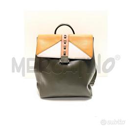 QUESTO ZAINO LE VIC PRONTO PER L AVVENTURA! ELEGANTE ECOPELLE VERDE CON DETTAGLI GEOMETRICI ROSA CIPRIA E SENAPE SULLA PATTA. PRATICO VERSATILE E PIENO DI STILE SI PORTA IN DUE MODI DIVERSI. IL TUO NUOVO COMPAGNO PERFETTO!