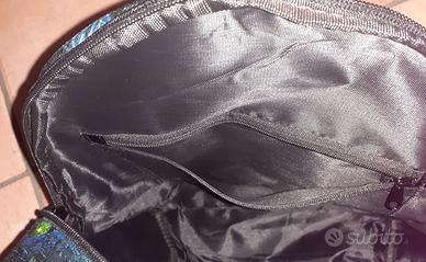 Zainetto leggerissimo 'Notte stellata' di Van Gogh. 25 cm di larghezza, 15 cm di profondità e 35 cm di altezza. Ideale come bagaglio a mano gratuito su Ryanair (compagnia che ha le maggiori restrizioni sul bagaglio a mano) e quindi su tutte le compagnie. Piccolo e comodo. Tessuto morbidissimo. Spallacci imbottiti e regolabili. Oltre alla tasca centrale ha una tasca anteriore con cerniera, una tasca interna grande senza cerniera, una tasca interna piccola con cerniera e due tasche laterali come da foto, ideali per borraccia, ombrellino ecc. Nuovo, con etichetta 'Caffè Milano.