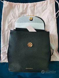 Zainetto nero di coccinelle in vera pelle. Misure 25x24x11 con possibilità di espansione con i bottoni sui lati. Nuovo con cartellino, sacchetto originale rosa e imballato con carta.