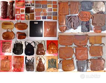 Disponibili, come da foto allegate (non esaustive), tanti altri oggetti in pelle (borse, borsette, borselli, borsellini, zaini, cinte, portadocumenti, portasigarette, tracolle, ed altro)"