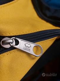 vendo zainetto a marchio ERREA usato forse una volta sola; ha una tasca frontale e due laterali, colore giallo e blú.