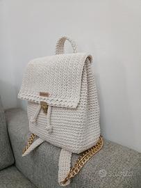 Zainetto fatto interamente a mano con cordino macramè color panna, mai usato.