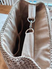 Vendo zainetto fatto a mano da artigiano in pelle beige e cotone lavorato a crochet causa inutilizzo a euro 60