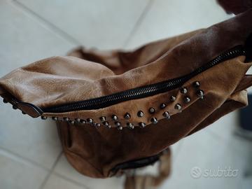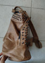 zainetto monospalla donna, finta pelle con borchie, grandezza media con tasca esterna con zip e tasche interne. Cinghie morbide. Buono stato.