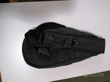 Zainetto monospalla con logo Martin's Beer. - Materiale in tela e similpelle. - Dettagli in metallo dorato. Colore Nero e Marrone