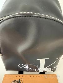Cerniera e una tasca. Larghezza 18 cm x altezza 25 cm circa