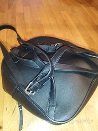 Comodo zainetto mini nero in pelle con spalline regolabili e tre scomparti. Rigido, apposta per non deformarsi.