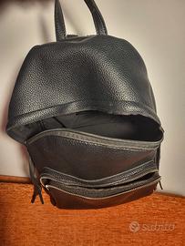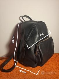 Zainetto nero 🖤 in similpelle. Marca: Primadonna (originale). Con spallacci regolabili. Compatto ma capiente, con 2 tasche esterne con zip + tasca interna con cerniera per tenere tutto in ordine (telefono, portafoglio, chiavi). Cerniere perfettamente funzionanti. Misure: 30×27×19 cm (vedi foto) Pratico e super versatile, perfetto per tutti i giorni. Ideale per scuola, università , lavoro o uscite casual. Comodo da indossare e facile da abbinare a qualsiasi outfit! Condizioni buone, anche se inutilizzato, non essendo vera pelle, presenta alcuni segni di usura sopra la cerniera, sulle cinghie e sulle frange delle cerniere (come da foto), difetti poco visibili, ancora perfettamente utilizzabile! 💬 Scrivimi per altre info e FOTO! zaino nero donna, mini zaino, backpack casual, borsa similpelle, zainetto urbano, borsa quotidiana, everyday bag, total black