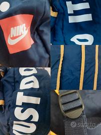 Zainetto vintage Nike Just Do It. - Colore blu e beige. - Logo Nike visibile sul davanti.