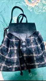 Elegante zainetto NUOVO in ecopelle nera e stoffa fantasia