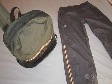 ZAINETTO K-WAY ,MODELLO LE VRAI 3.0 CON LE SEGUENTE CARATTERISTICHE …..- Nylon Ripstop—Antistrappo--- Impermeabile--- Zip in tape K-Way++ Pantaloni K-way uomo e donna LE VRAI pantalone unisex impermeabile Edgard K-Way . Il modello è realizzato nel classico tessuto ripstop impermeabile e traspirante ed è rifinito con tasche funzionali ed elastici in vita e alle caviglie per la massima libertà di movimento.--Tessuto ripstop impermeabile, idrorepellente, antivento, traspirante-Cuciture termonastrate-Bordo vita con elastico-2 tasche con zip--Chiusura fondo gamba con –lastico--Fitting regolare--Logo stampato coloratoUtilizzo: Variable Meteo-Genere: Unisex-Intero: Nylon 100%Dimensioni: 40 x 30 x 12 cm; 30 x 16 cm Entrambi gli articoli sono nuovissimi hanno avuto un costo da nuovo di 180 euro …….vendo in blocco euro 70 intrattabile …evitate offerte a piacere e acquisto di singolo pezzo solo in blocco …..chiamate a contatto tel x ulteriori foto-eventuale spedizione-inform- tel 3299788703