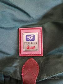 Sbag di Piero Guidi originale, in tessuto di nylon, color verde scuro, chiusura con cordone e fibbia, due tasche davanti chiuse da cerniera, cinghie in colore contrastante bordeau/marrone. Molto leggero ma anche resistente. Originale Piero Guidi. Mai utilizzato, assolutamente nuovo. Euro 35. Ritiro o spedizione a carico dell'acquirente.