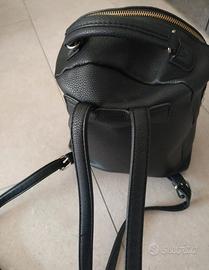Zaino Stradivarius, color nero, con cinte regolabili e 3 tasche, in poliuretano. Unico difetto in un punto si è scucito leggermente dalla fodera (foto 3), ma ancora perfettamente funzionante.
